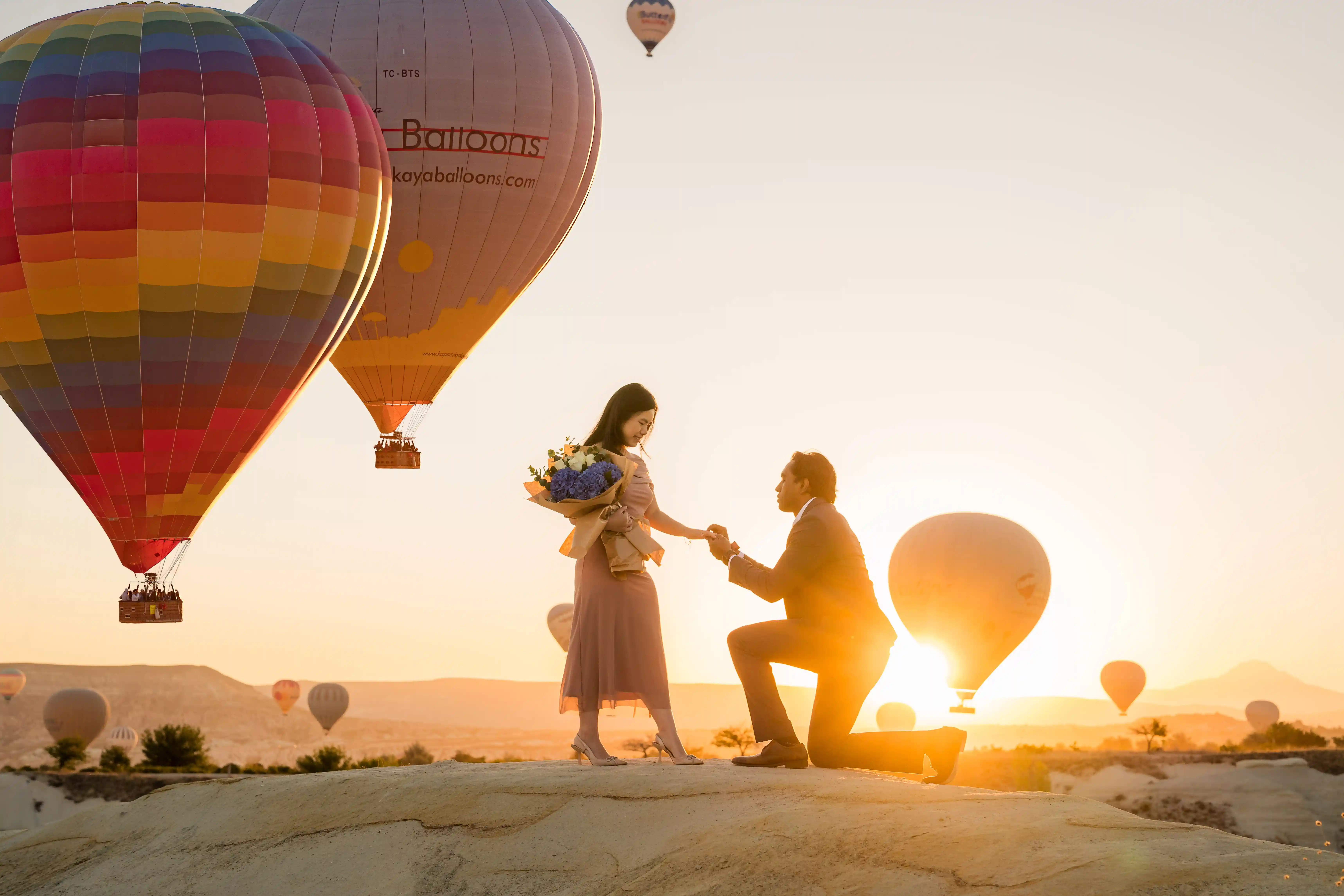 "Elevate your love story in Cappadocia. Surrounded by floating balloons and ancient valleys, we create a cinematic proposal experience that remains timeless, breathtaking, and absolutely unforgettable."